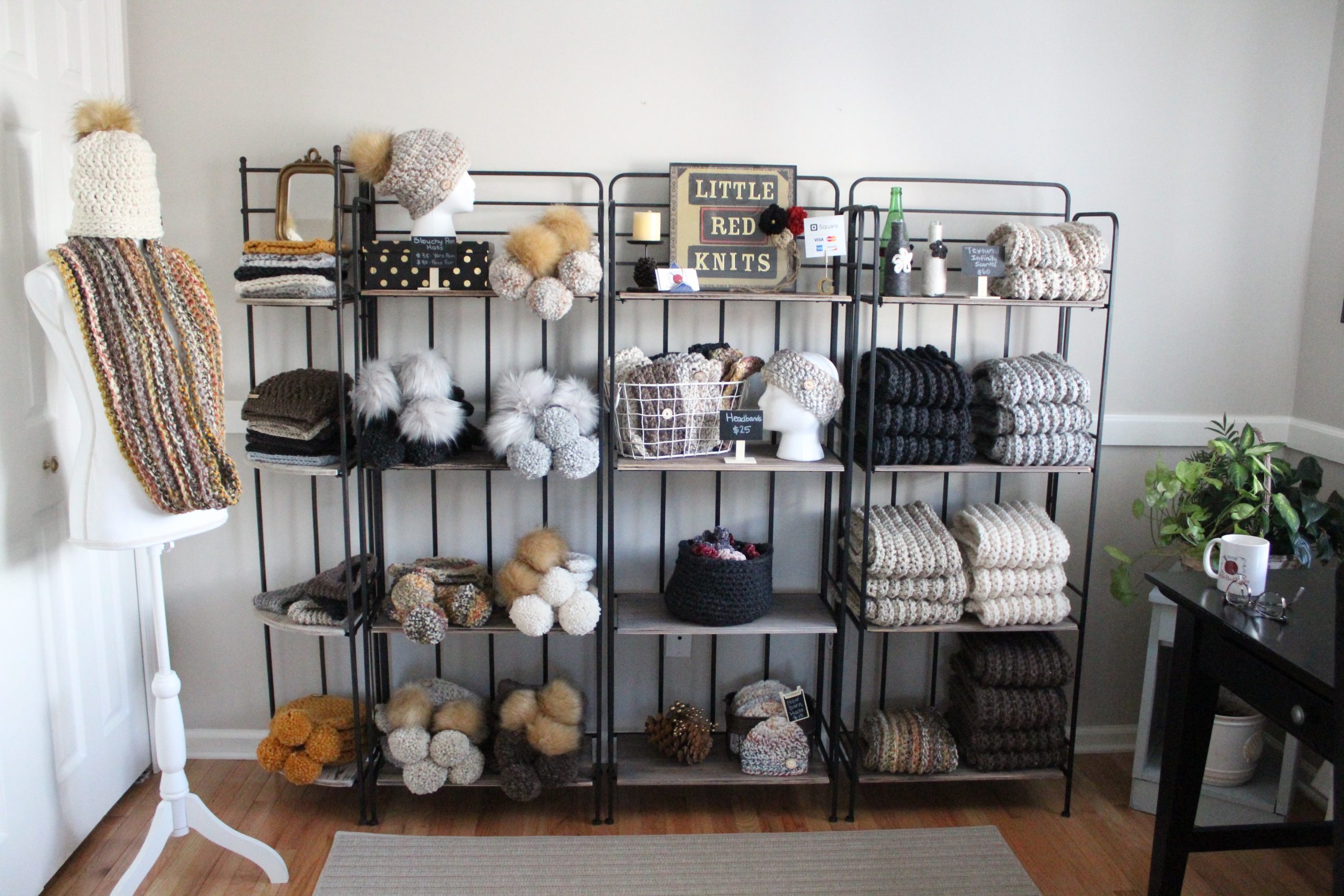 Having smaller price point items close to the checkout area, similar to big box stores is a great way to boost your sales. To be honest, I probably buy something in the Marshall’s check out line 75% of the time I go there because they have grab bag items for $10 or less. It makes it easy to throw it in your cart and take it home with you without feeling guilty about spending a fortune. Ways that I incorporate this to my booth is selling velvet scrunchies and crochet flower clips near my checkout space. The clips are $5 and they can mix & match colors to add to the knitwear they are purchasing today, or a hat or scarf they may already have. It’s a great way to add a pop of color or include a stocking stuffer if they are looking for a small & thoughtful gift. When they are checking out I say, “would you like to add a flower clip or scrunchies to your purchase today?” This gives the buyer a moment to think if they need or want anything else, take a peek at the lesser priced items, and make a decision, which will hopefully result in an increase to your sale.
